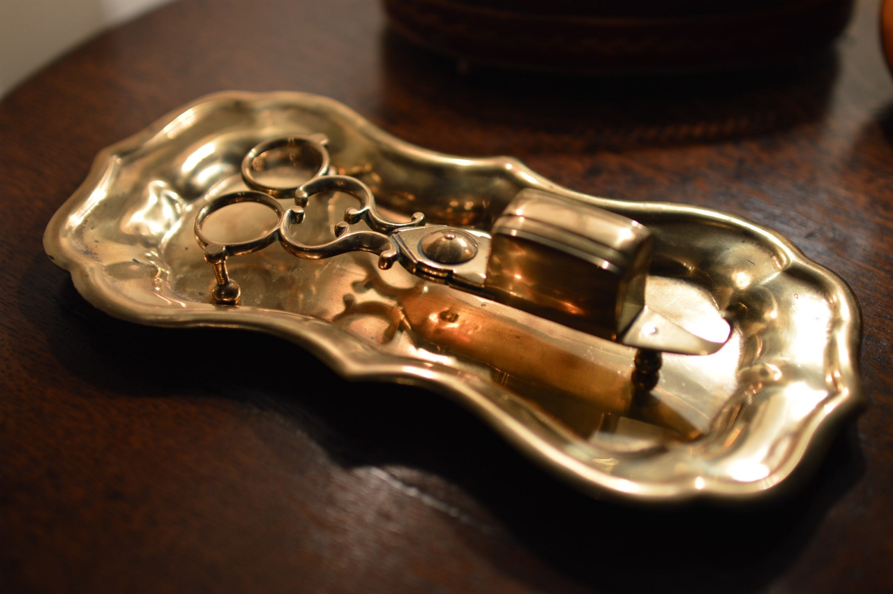 Brass wick trimmer / snuffer scissors with tray